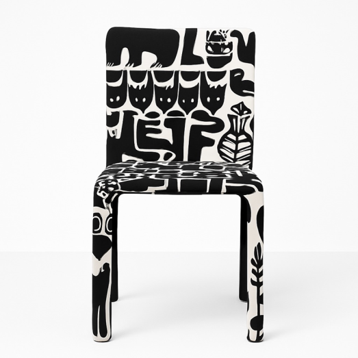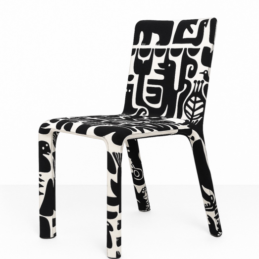 Stoff KANTELEEN KUTSU schwarz-weiß MarimekkoStoff abziehbarSitzhöhe 46cm Sitztiefe 40cmBreite 44cm, Tiefe 54cm, Höhe 80cmEINZELSTÜCK MIT DIESEM STOFF