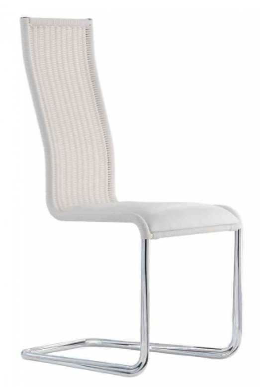 stapelbar, ohne ArmlehnenGestell Edelstahl tube aplatiKunstgeflecht Farbe reinweissSitzhöhe 47 cmBreite 50cm, Tiefe 57cm, Höhe 105cm