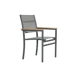 Gestell Alu pulverbeschichtet grauSitz-/Rückenbespannung Batyline grauArmauflagen Teakholz unbehandeltSitzhöhe 44cmBreite 63cm, Tiefe 60cm, Höhe 92cm