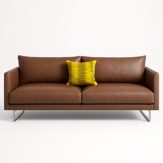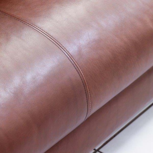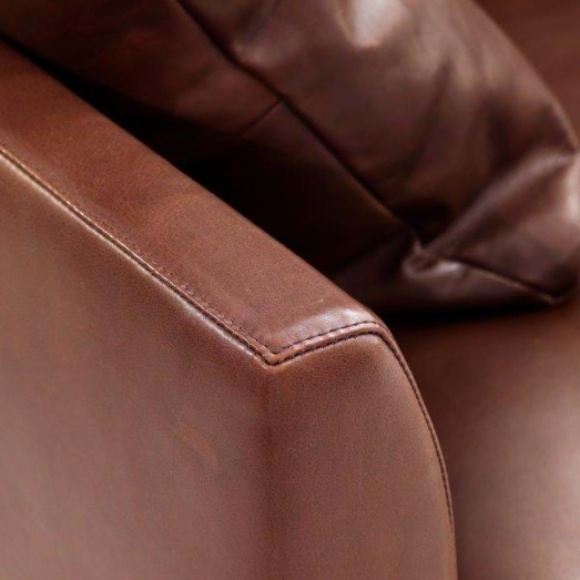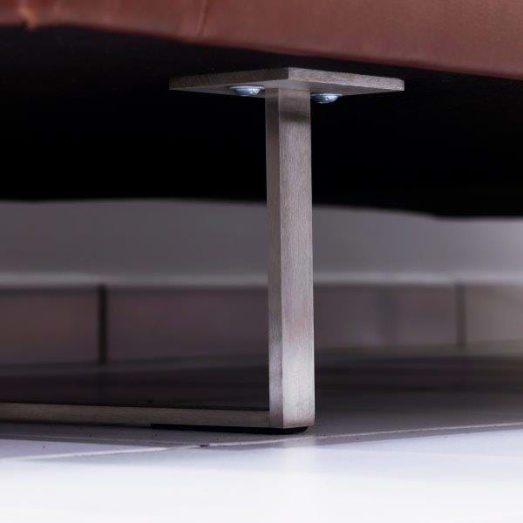 Design Gijs Papavoine, 2005Bezug Leder Rancho Sienna L50ohne zusätzliche Nähteinkl. 2 Armkissen (45x45) in Leder L40Kufengestell EdelstahlHöhe 80cm, Breite 218cm, Tiefe 97cmSitzhöhe 43cm