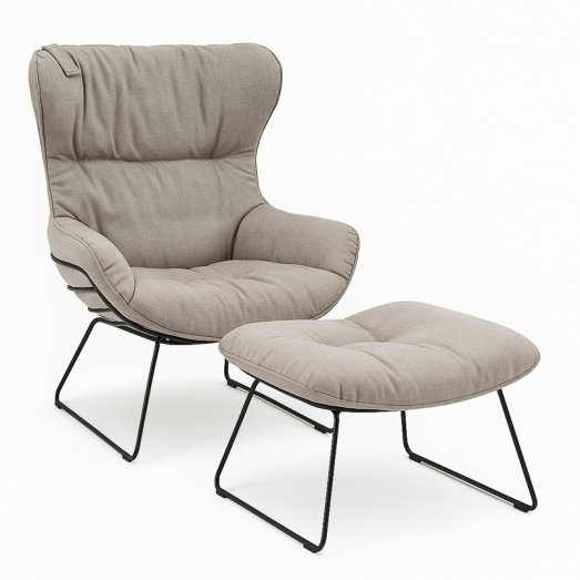 Design C. Kahleyss u. B.HoffmannDrahtgestell outdoor,pulverbeschichtet Feinstruktur matt schwarzinkl. Stuhlgleiter KunststoffBezug wetterfestSonderstoff: Natte SunbrellaFarbe carbon beige, 100% Acryl
