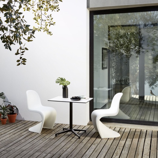 Design Verner PantonPolypropylen matt weißfür Außenbereich geeignet (kein Wasserablauf)KLASSISCHE SITZHÖHE 41cm, Sitztiefe 45,2cmBreite 50cm, Tiefe 61cm, Höhe 83cm