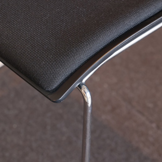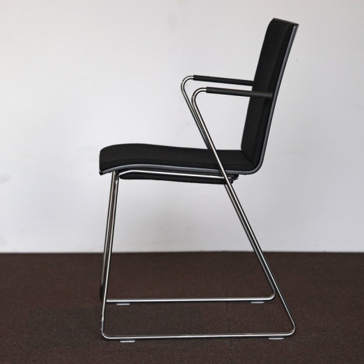 Delphin Designstapelbar Gestell Rundrohr verchromtArmauflagen ElastomerkunststoffSitzschale Formholz Buche, schwarz geb.Sp-Polster Cava3, PG 2, Farbe192 schw.Gelenkgleiter KunststoffSH 46cm B54cm T55cm H83cm
