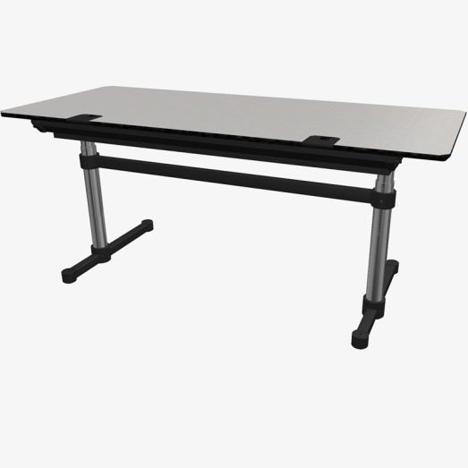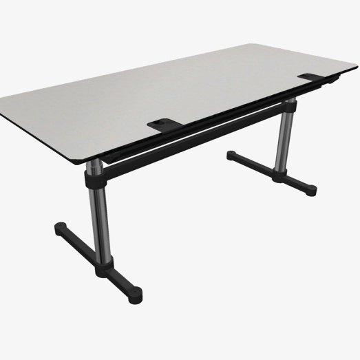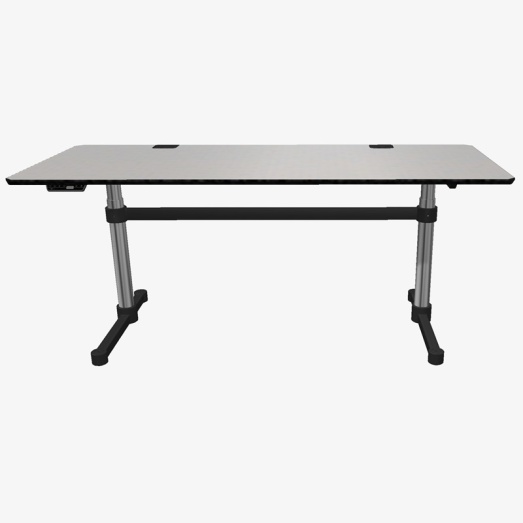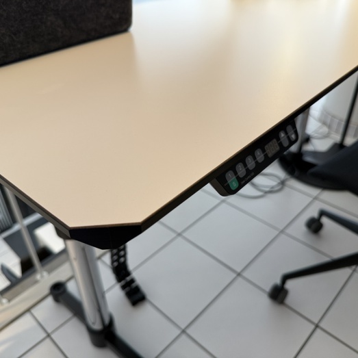 elektrisch höhenverstellb. von 70-120cmTischplatte schiebbar für Kabelführungin Kabelwanne unterhalb TischplatteTischgestell verchromtFussausleger Kunststoff schwarzPlatte Kunstharz pastellgrauBreite 175cm Tiefe 75cmHöhe 70-120cm