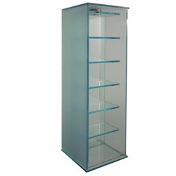 Kubus für 120 CD´sAusführung Satinato, geätztes GlasFloatglas 10mmDrehelement und Führung EdelstahlBreite 28cm, Tiefe 28cm, Höhe 91cm
