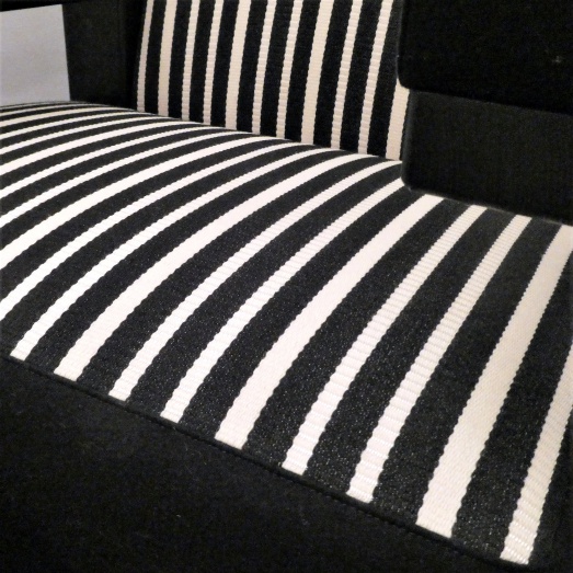Entwurf Walter GropiusGestell Esche massiv schwarzSitz und Rückenfläche Bauhaus-Stoffschwarz/weiß Kat. IISeiten und Armlehnen schwarzSitzhöhe 42cmBreite 70cm, Tiefe 70cm, Höhe 70cm