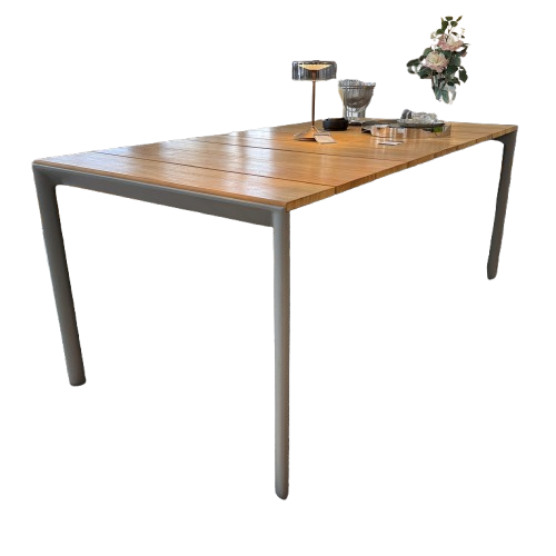 Design Bartoliausziehbar Platte Teakholzplatten (Breite je 19,5cm) Beine und Verlängerungen: grau lackiertes Aluminium Breite 179-219-259cm Tiefe 90cm Höhe 76cm