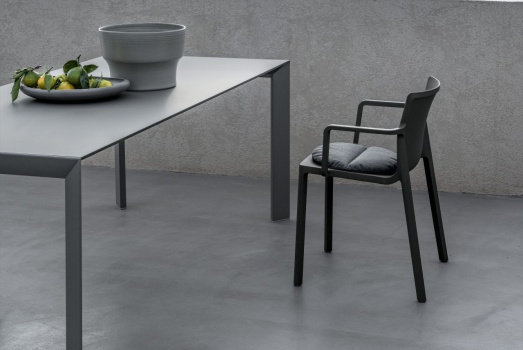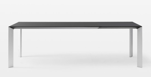 Design Bartolioutdoor geeignet Platte und Verlängerungen Fenix weiß Kos 0032, Kante schwarz Beine Lack matt weiß Breite 166 (203,241-278)cm, Tiefe 90cm, Höhe 75cm