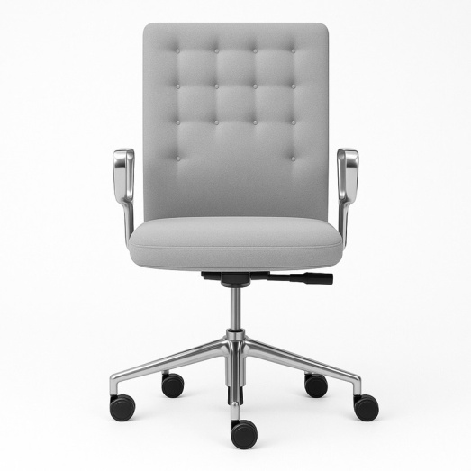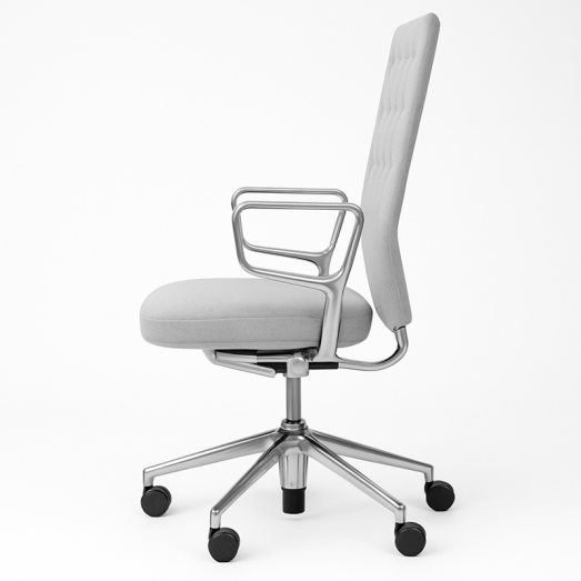 verstellbare Lumbalstütze, Rahmen 53 soft grey Ring-Armlehne alu, nicht höhenverstellbar Vorwärtsneigung & Sitztiefenverstellung Bezug Plano 05 cremeweiss/sierragrau 5-St.-Untergestell Alu poliert, Rollen weich Sitzhöhe 40-52cm B 70-94cm T 66-79cm H 99-110cm