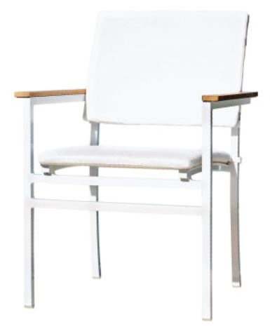 Gestell Alu pulverbeschichtet weißSitz-/Rückenbespannung Batyline weißArmauflagen Teakholz unbehandeltSitzhöhe 44cmBreite 63cm, Tiefe 60cm, Höhe 92cm