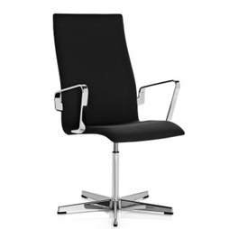 Rücken mittelhoch, mit Armlehnen verchromt, Sitzhöhe fest, drehbarBezug Basic Leder schwarz, Gestell HochglanzSitzhöhe 48 cm, Breite 60cm, Tiefe 57cm, Höhe 102cm