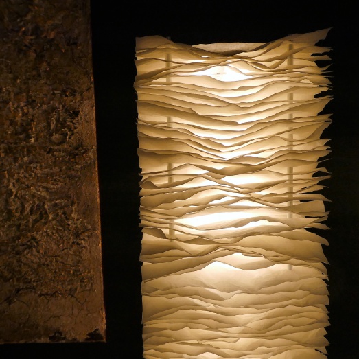Gestell Stahl pulverbeschichtet weißalu Polyestervlies schwer entflammbarinkl.LED 64W 2700K 2300lm CRI>80 Konverter integriert, Netzkabel 300cmDimmschalter oben in Leuchte Breite 29cm Höhe 150cm Tiefe 29cm