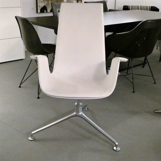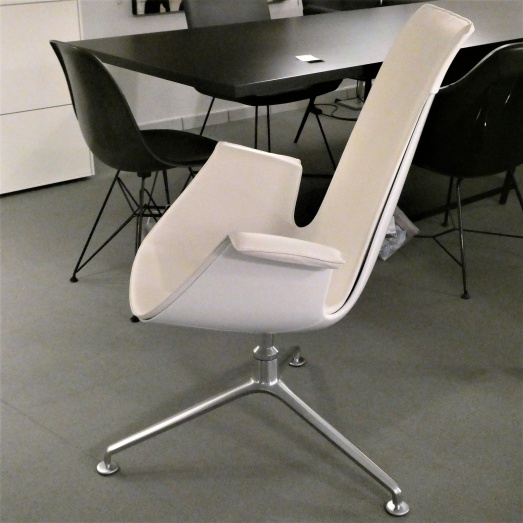 Design Fabricius & KastholmRückenschale lackiert glanz weißhoher RückenBezug Leder weiß PG55Gestell 3-Strahl KreuzfußAluminium poliert, inkl. GleiterSitzhöhe 45cm, Sitztiefe 43cmBreite 70cm, Tiefe 72cm, Höhe 104cm