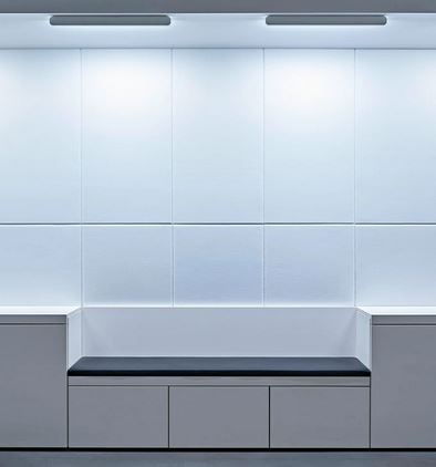 Lichtlenkung seitlich WallwasherAufbau mit integriertem KonverterProfil weiß matt, Cover weiß mattLED 45W CRI95 high color 230V AC2700-4000K Lichtfarbe variabelGestensteuerung od. occhio airLänge 100cm