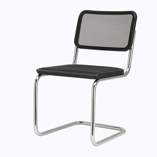Design Marcel Breuer 1929/30Sitz- und Rücken Bespannung Kunststoffnetz schwarzRahmen Buche matt schwarz gebeizt Gestell Rundrohr chrom glänzendexkl. GleiterSitzhöhe 45cmBreite 46cm Tiefe 60cm Höhe 82cm