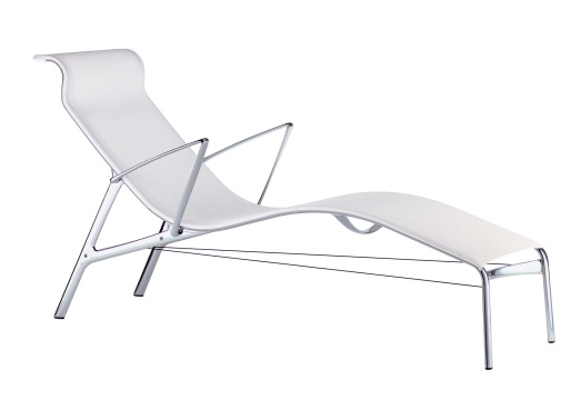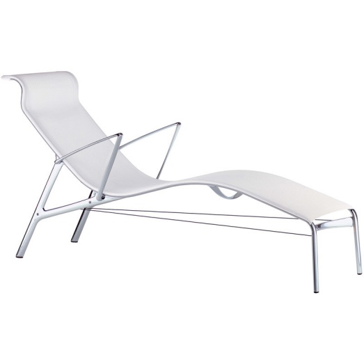 Design Alberto MedaSonderausführung: Gestell Alu Hochglanz verchromtEINZELSTÜCKSeilverspannung schwarz R027Liegefläche Netzgewebe R009 weißBreite 66cm, Tiefe 146cm, Höhe 82cm