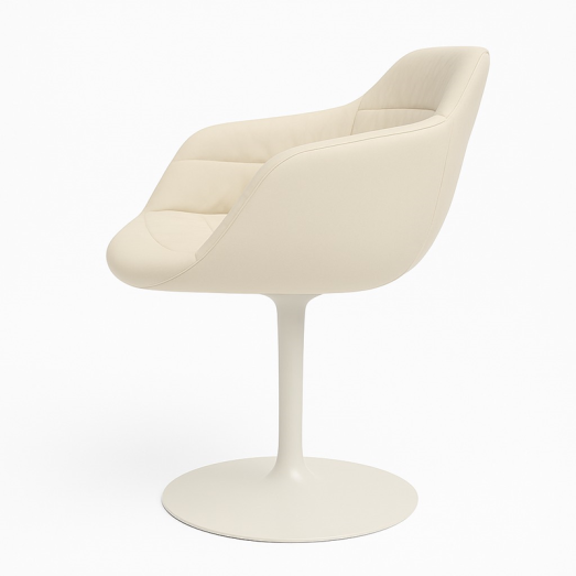 Design J. M. Massaud 2009Drehgestell mit TellerfußLack matt weißSitzschale gepolstert Bezug Stoff Kat. F Londra 01 cremeSitzhöhe 46cmBreite 60cm Tiefe 56cm Höhe 78cm