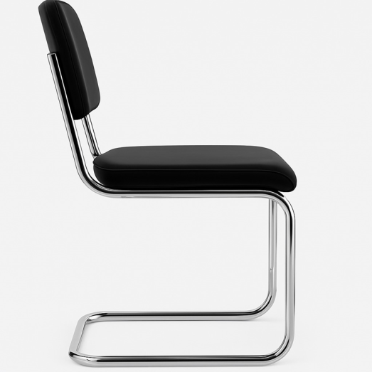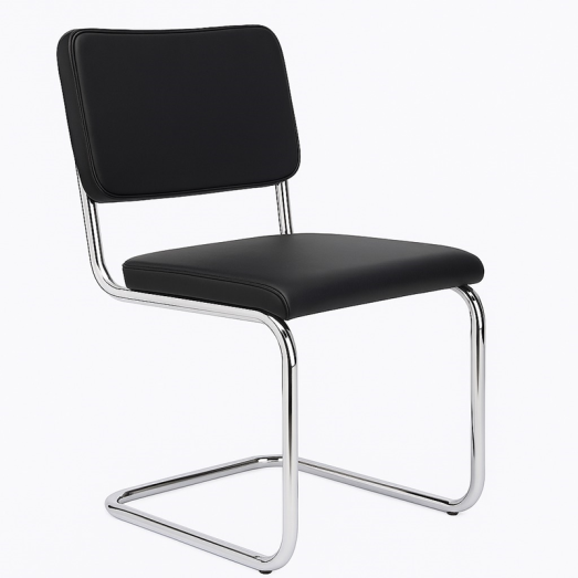 Design Marcel Breuer 1929/30Sitz- und Rücken gepolstert Leder1 TL 9 schwarzGestell Chrom glänzendSitzhöhe 46cmBreite 46cm Höhe 80cm Tiefe 60cm