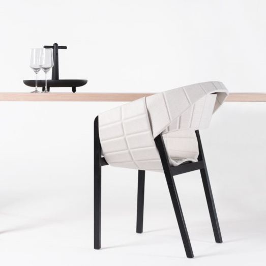 Design Jörg Boner, 2007Gestell Esche schwarz 091Bezug A Remix hellgrau 621Breite 58cm, Tiefe 52cm, Höhe 82cmEINZELSTÜCK