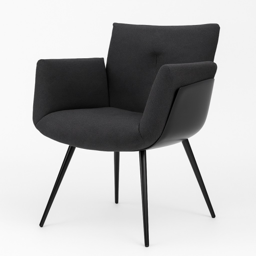 Design Jehs+LaubSchale Polypropylen schwarzOberfläche =EINZELSTÜCK4-Fuß Metallrohrgestell schwarz/ FilzgleiterPolster-Einsatz Polyäther dauerelastischBezug Stoff 10068 schwarz/grau abnb.SH 47cm, ST 44cm, Armlehnhöhe 70cmBreite 66cm, Tiefe 63cm, Höhe 87cm