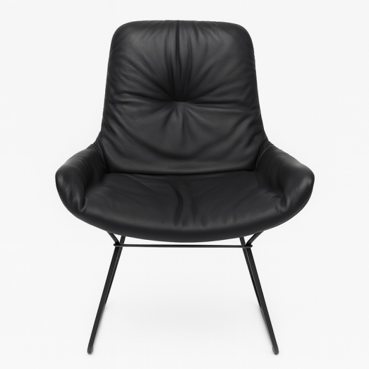 Design Birgit HoffmannVariante uni, mit kurzer ArmlehneBezug Leder Sahara Ebony 60009Drahtgestell 1.1 Metall schwarz ME001inkl. KunststoffgleiterSitzhöhe 47 cm