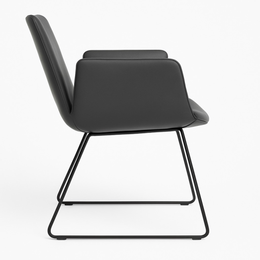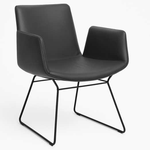 Design Birgit HoffmannVariante uniBezug Leder Sahara anthrazit 60002Drahtgestell Metall schwarz ME001inkl. FilzgleiterSitzhöhe 47cm, Armlehnhöhe 69cmBreite 53cm Tiefe 58cm Höhe 84cm