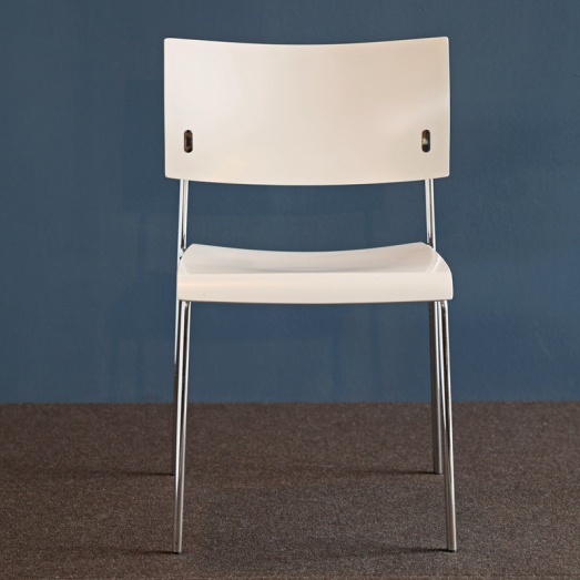 Design Peter Horn 2006Gestell verchromt Ausführung weiß lackiertEINZELSTÜCKSitzhöhe 45,5cmBreite 50cm, Tiefe 50cm, Höhe 78,5cm