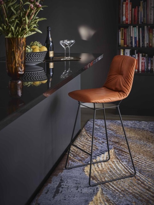 Design Birgit HoffmannVariante StandardBezug Leder Sahara Ebony 60009Drahtgestell 1.1 Metall schwarz ME001inkl. KunststoffgleiterSitzhöhe 72cm (Altern.82cm od.65cm)Höhe Fußablage 26cmBreite 50cm Tiefe 59cm Höhe 110cm