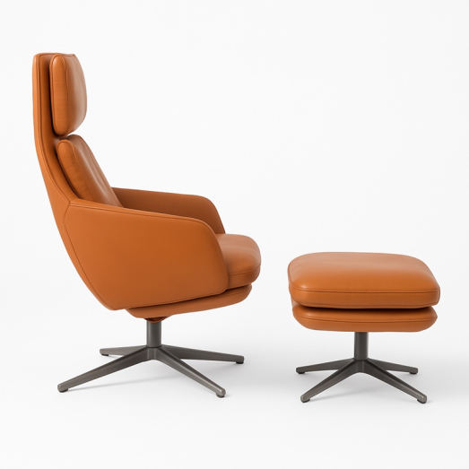 Design Antonio Citterio, 2019Gestell Viersternfuß Alu poliertBezug Polster Leder Premium cognacSchale Rücken/Sitz Leder Forte Decor cognacFilzgleiter für HartbodenHocker B 60cm, T 60cm, H 42,2cmB69cm T83,5cm H101-106cm SH41,5cm
