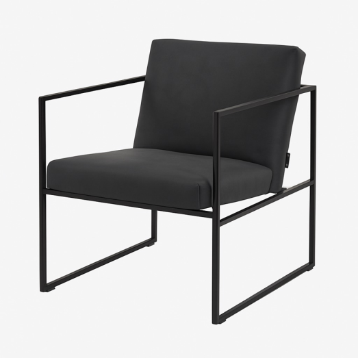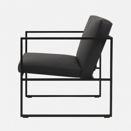 Design Kati Meyer-Brühlohne AbsteppungSitz- und Rückenpolster abziehbarglatt bezogen, ohne SteppnahtAnilinleder 5668 0099 Taron (Kat. 566)Rahmen Metall schwarz pulverbesch.Breite 65cm, Tiefe 65cm, Höhe 76cmSitzhöhe 44cm, Sitztiefe 48cm
