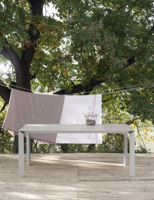 Design Bartolioutdoor geeignet Platte und Verlängerungen Fenix weiß Kos 0032, Kante schwarz Beine Lack matt weiß Breite 166 (203,241-278)cm, Tiefe 90cm, Höhe 75cm