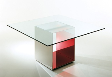 Design G.+O. BurattiPlatte Kristallglas teilw. mattiertSockel außen Stahl glanzpoliertinnen Deepglas X1 Farbe rotEINZELSTÜCKHöhe 72cm, Breite 130cm, Tiefe 130cm