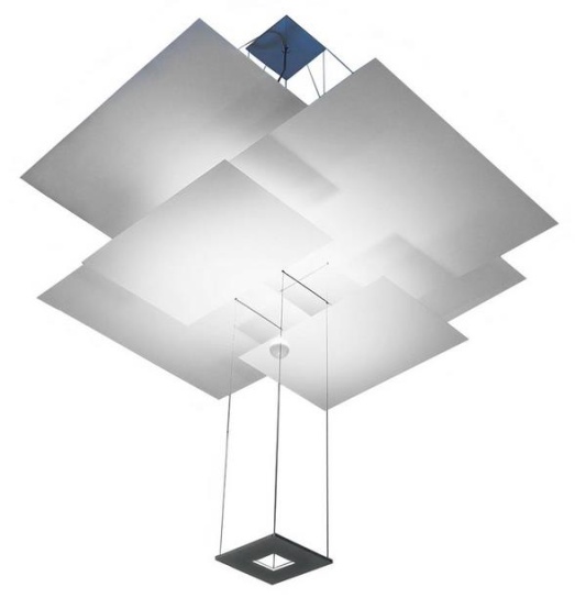 Design Ingo Maurer und Team, 2005Aluminiumblätter matt weiß lackiert1x LED 39W, 2700K, 230VAbhänghöhe max. 300cmBreite 130cm, Tiefe 130cm
