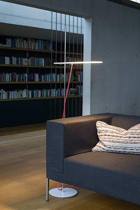 LED 2700K, GestensteuerungDiffusor Acrylglas, höhenverstellbarFußplatte Stahl pulverbeschichtet weißStab Stahl verchromt, Kabel grau11W, 230V AC, IP20, 856lmBreite 51,5cm Höhe 150,5cm