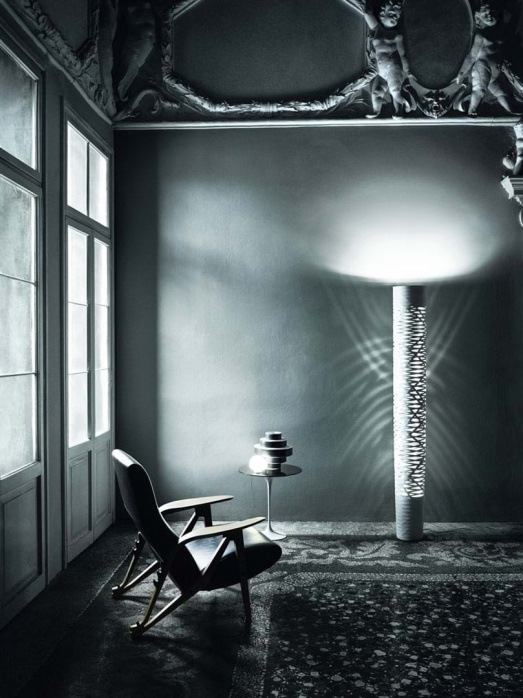 Schirm Glasfaser lackiert weißinkl. LED 57W 2700KDimmer inbegriffen, Zweifache SchaltungØ 20-25cm, Höhe 195cm
