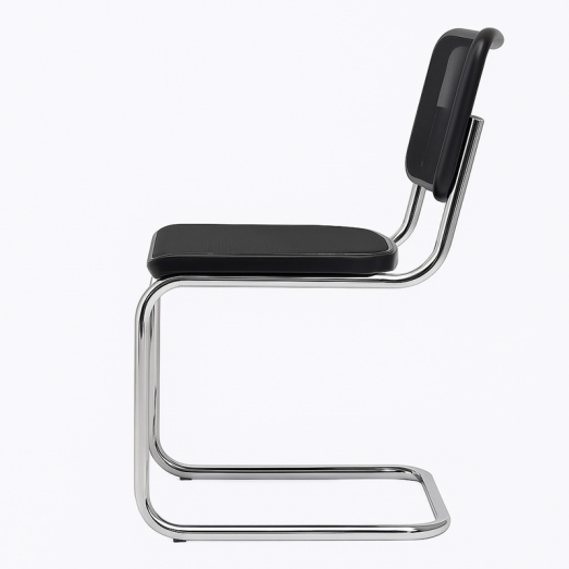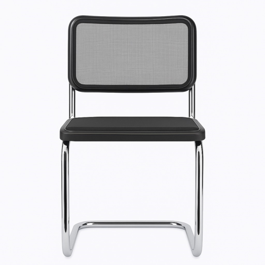 Design Marcel Breuer 1929/30Sitz- und Rücken Bespannung Kunststoffnetz schwarzRahmen Buche matt schwarz gebeizt Gestell Rundrohr chrom glänzendexkl. GleiterSitzhöhe 45cmBreite 46cm Tiefe 60cm Höhe 82cm