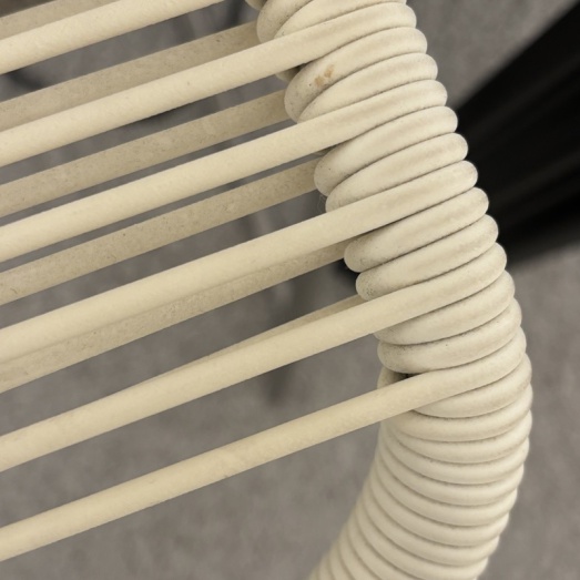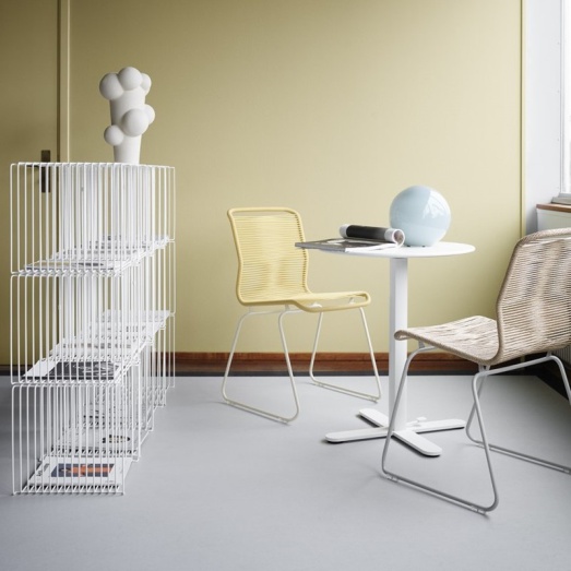 Design Verner Panton 1955Rahmen EdelstahlSitz Kunststoffschnur mit NylonkernhandgeflochtenFarbe snow (FARBE EINZELSTÜCK)bis zu 4 Stühle stapelbarSitzhöhe 49cmBreite 54cm Tiefe 55cm Höhe 87cm