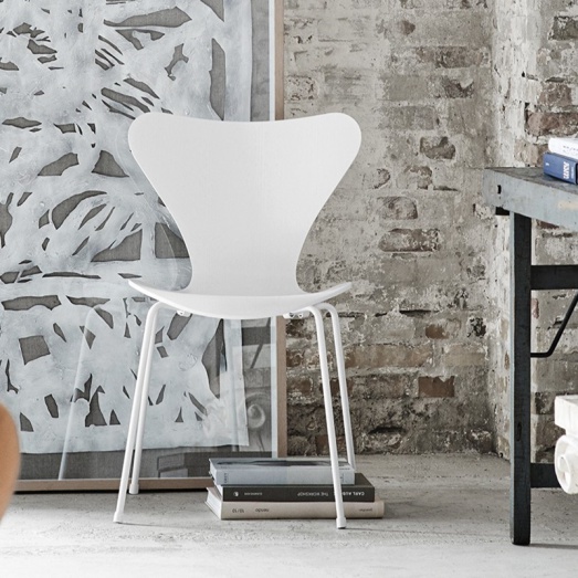 Design Arne JacobsenAusführung Beine verchromtSchale Mattlack weiß Sitzhöhe 46,5 cmBreite 50cm, Tiefe 52cm, Höhe 80,5cm