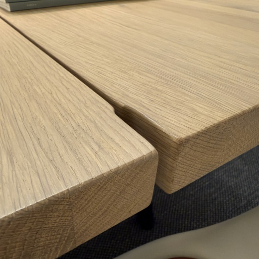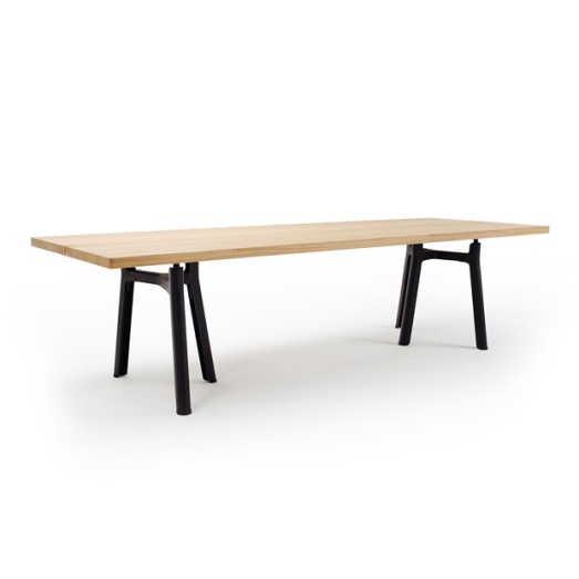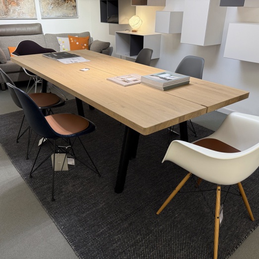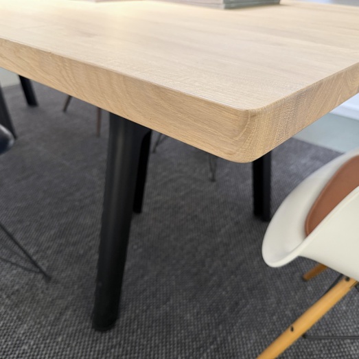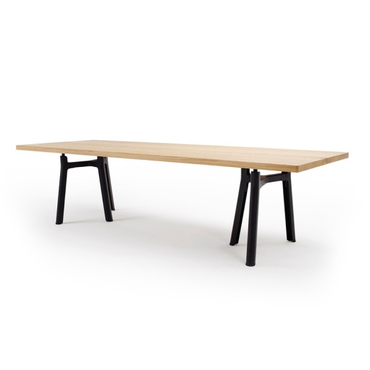 Design Jore van AstPlatte Eiche massiv, mit Fugeweiß geölt C36lokales HolzGestell Epoxy fine texture auf Aluminiumschwarz RAL 9005, Höhe einstellbarBreite 240cm Tiefe 100cm Höhe verstellbar 71-78cm