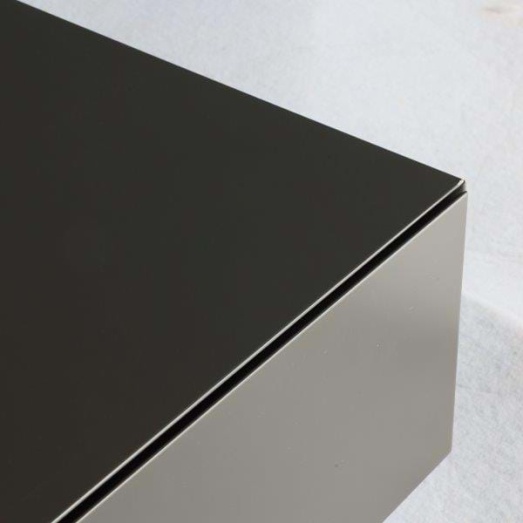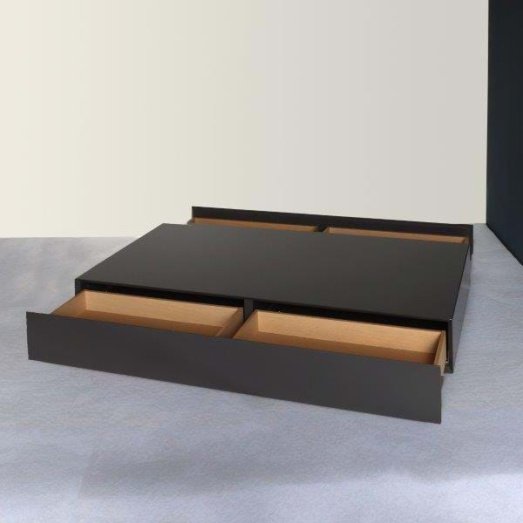 Ausführung Lack 313 basaltmit 2 breiten Schubkästen beidseitig (an der Längsseite) zu öffnenInnen Eiche hellBreite 144cm, Tiefe 72cm, Höhe 22,5cm