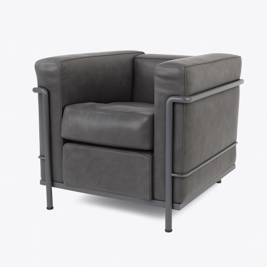 Original! Design Le CorbusierGestell grau matt lackiertBezug Leder Victoria offenporig Farbe 13Z353 anthrazitPolsterung SynthetikSitzhöhe 48cmBreite 76cm, Tiefe70cm, Höhe 67cmLIMITIERT IN DIESER AUSFÜHRUNG