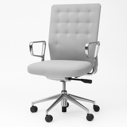 verstellbare Lumbalstütze, Rahmen 53 soft grey Ring-Armlehne alu, nicht höhenverstellbar Vorwärtsneigung & Sitztiefenverstellung Bezug Plano 05 cremeweiss/sierragrau 5-St.-Untergestell Alu poliert, Rollen weich Sitzhöhe 40-52cm B 70-94cm T 66-79cm H 99-110cm