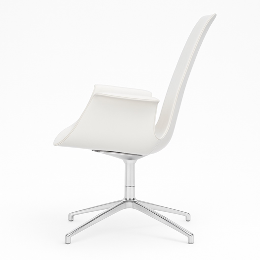 Design Fabricius & KastholmRückenschale lackiert glanz weißhoher RückenBezug Leder weiß PG55Gestell 3-Strahl KreuzfußAluminium poliert, inkl. GleiterSitzhöhe 45cm, Sitztiefe 43cmBreite 70cm, Tiefe 72cm, Höhe 104cm