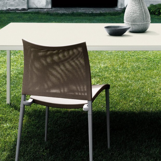 Design Pocci und Dondoli, 2002Outdoor geeignetstapelbar, ohne ArmlehnenGestell Aluminium Artico grau lackiertFARBE EINZELSTÜCKSitz und Rücken Netz MelangeSitzhöhe 45cmBreite 47cm, Tiefe 54cm, Höhe 82cm