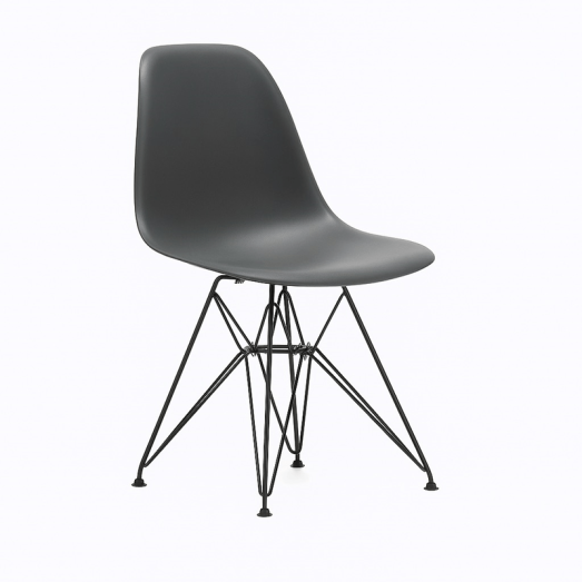 Design Charles und Ray Eames 1950PP-Kunststoffschale ohne PolsterFarbe 56 granitgrauDraht-Untergestell mit Verstrebungenbasic dark 30, nicht stapelbarFilzgleiter für Hartboden basic dark 05Sitzhöhe 43cm (neue Höhe)Breite 46,5cm, Tiefe 55cm, Höhe 83cm