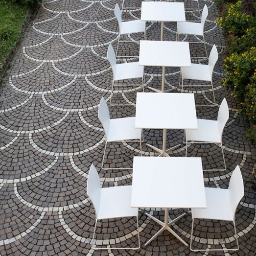 Design Piergiorgio CazzanigaindoorKufen-Gestell aus matt weiß lackiertem StahlSitzschale Polypropylen matt weißBreite 54cm, Tiefe 49,7cm, Höhe 75,7cmSitzhöhe 44cm