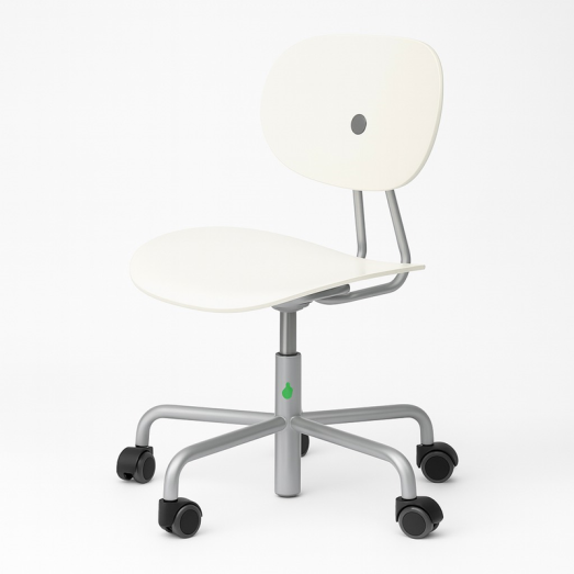Design Peter Horn, 2005/2006Gestell silber, RAL 9006Formholz Buche weiss lackiert, RAL 9010mit Rollen SicherheitstechnikSitzhöhe 30-41,5cmfür Körpergröße etwa von 1,10 bis 1,60m