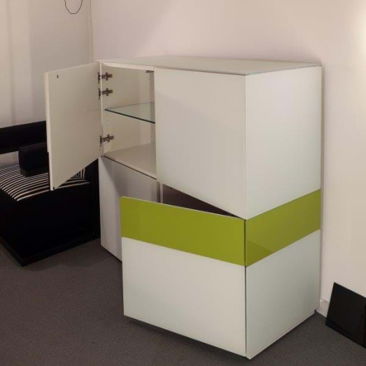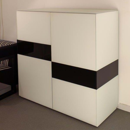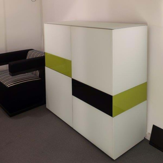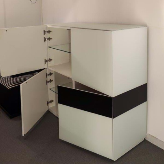 4 Türenschränke Lack weiß mit Wechseloption; 4 Glasböden4 Front-, Seitenblenden u.1 Abdeckplatte Glas matt weiß2 Front- u. Seitenblende in Lack hochglanz(gg. Aufpreis Farbwechsel)Breite 120cm, Tiefe 50cm, Höhe 120cm