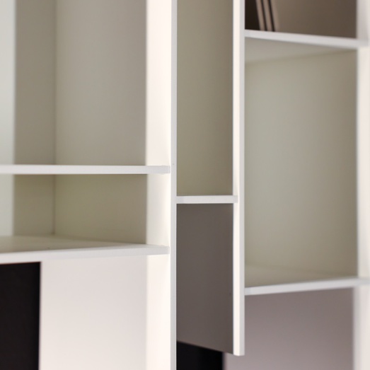 Designer NeulandRegalkombination offenMaterial MDF 6mm Struktur lackiert matt weiß X042Rückwand Melamin weißBreite 81,6cm, Tiefe 20cm, Höhe 96cm