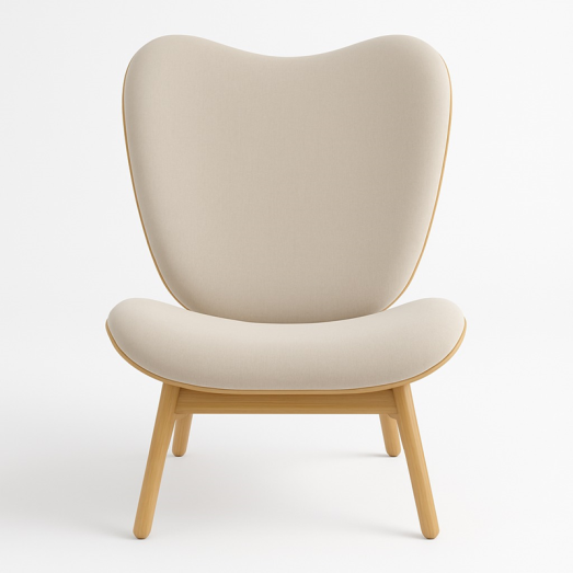 Design Anders KlemLOUNGE CHAIR TALLGestell Eiche FSC zertifiziertBezug Horizons S, austauschbarFarbe White Sands100% recycled polyesterSH42cm B73cm T93cm H106cm